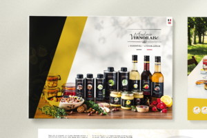 En 2021, j’ai travaillé en collaboration avec Murielle JARRY (Filea conseil) pour l’Huilerie Vernoilaise. Nous avons été amenées à concevoir une plaquette professionnelle présentant l’entreprise ainsi qu’un catalogue produits. Les étiquettes de leurs trois gammes produits ont également été revues (huiles vierges 1ère pression, huiles de goût, moutardes et vinaigres) ainsi que les supports de présentation pour leur stand professionnel.